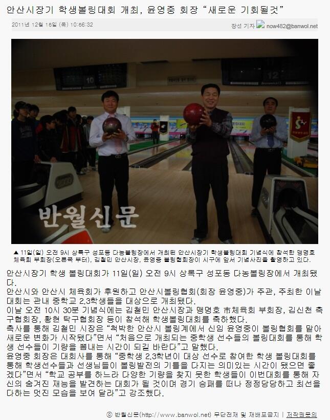 안산시장기 학생볼링대회 개최, 윤영중 회장 “새로운 기회될것”
