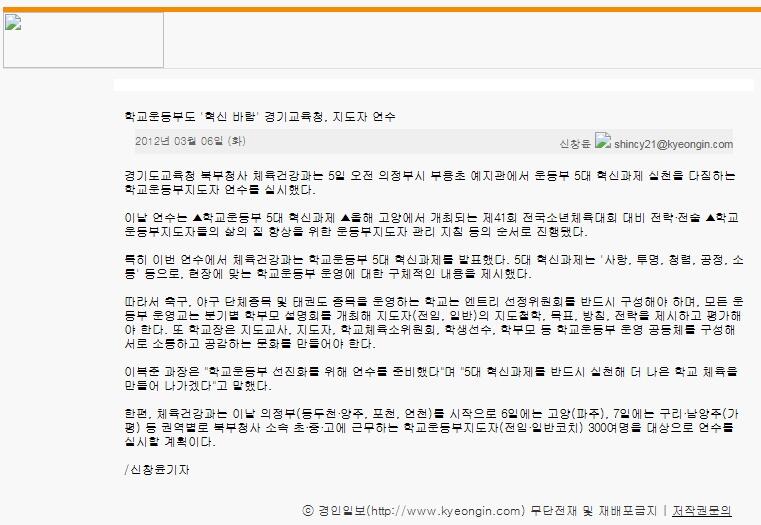 학교운동부도 '혁신 바람' 경기교육청, 지도자 연수
