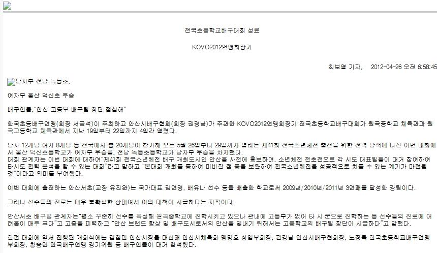 KOVO2012연맹회장기 전국초등학교배구대회 성료