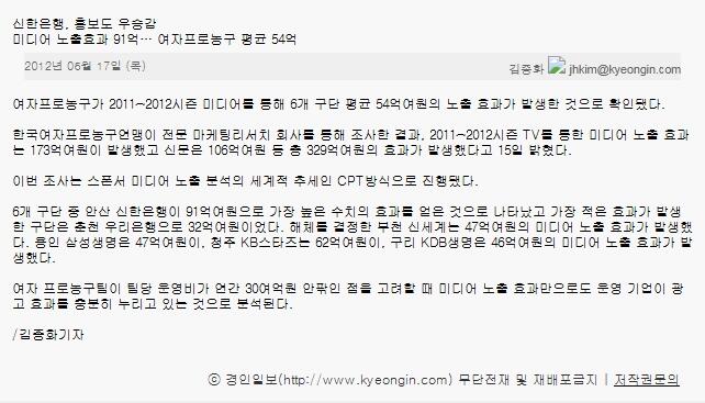 신한은행, 홍보도 우승감