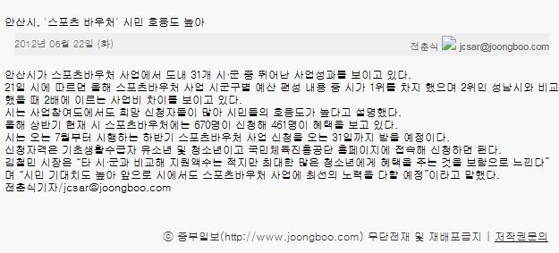 안산시, '스포츠 바우처' 시민 호응도 높아